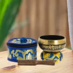 Los cuencos tibetanos ya se usaban hace 4000 años y tenían usos astrológicos, terapéuticos y para rituales secretos. Se dice que tañerlos elimina tensiones en el cuerpo, limpia el ambiente de energías negativas y crea un instante de paz. Cada cuenco tiene un sonido único y cada persona una manera peculiar de tocar según su carácter o su estado de ánimo. Si se tocan varios a la vez, la vibración resultante multiplica el efecto de los sonidos.